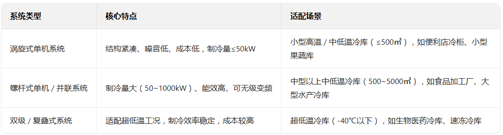 维护便捷性:选择配件易采购、品牌售后网点多的系统(如主流品牌涡旋 / 螺杆机),避免小众机型后期维护困难