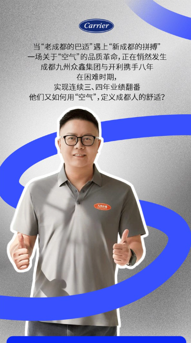 当“老成都的巴适”遇上“新成都的拼搏”,一场关于“空气”的品质革命,正在悄然发生。成都九州众鑫集团与开利携手八年,在困难时期,实现连续三、四年业绩翻番,他们又如何用“空气”,定义成都人的舒适?