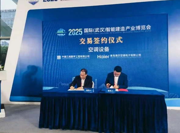 展会现场,海尔智慧楼宇总包行业总监张海临与中建三局完成科研合作课题签约及创新产品交易签约仪式。其实,这并非双方首次携手——自2019年以来,双方已在郑州地铁3号线、成都轨交27号线等项目中深度合作,签约总金额过亿。其中,郑州地铁项目采用风水联动解决方案,成都地铁应用高效机房方案,均实现了能耗降低与能源精细化管理;更值得一提的是,今年战略集采项目中的AI多联机,可降低30%能耗并减少维护成本。