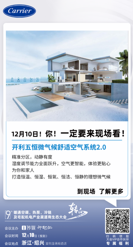 破局市场,需要有清晰的思维和明确的战略。开利RLCS期待与全国渠道商伙伴一道,探讨如何凭借系统优势和品牌背书,实现服务的价值升级,共同推动暖通空调、热泵及宅配机电产业的高质量发展。12月10日至12日,相约绍兴富悦温德姆酒店,与开利RLCS共赴共赴成长之路。