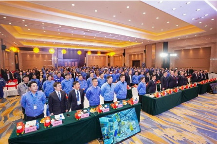 一曲激昂豪迈的《盾安之歌》响彻全场,拉开了年度总结表彰大会的序幕,全体与会人员肃立齐唱,歌声中包含盾安人的赤诚热爱和责任担当,彰显出的是盾安人的超越自我、奋发有为的精神风貌,旋律一响,初心滚烫,坚定信仰,何惧路长!
