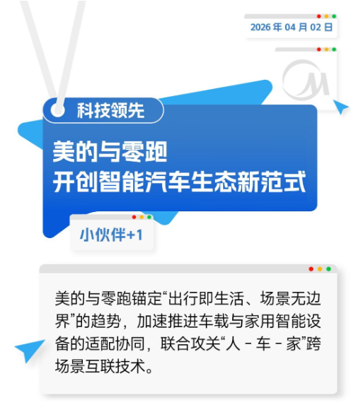 美的与零跑锚定“出行即生活、场景无边界”的趋势,加速推进车载与家用智能设备的适配协同,联合攻关“人 - 车 - 家”跨场景互联技术,推动行业从“单一产品供给”向“全场景服务生态”转型。
