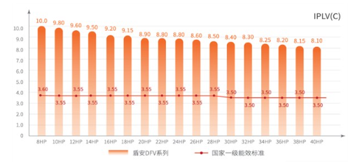通过核心技术的革新以及系统的整体优化,综合性能系数IPLV(C)最高达10.0,超国家一级能效水平,系统整体节能性能进一步提高。