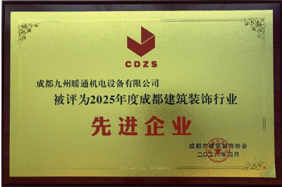 祝贺成都九州暖通机电设备有限公司荣获2025年度成都建筑装饰行业先进企业!